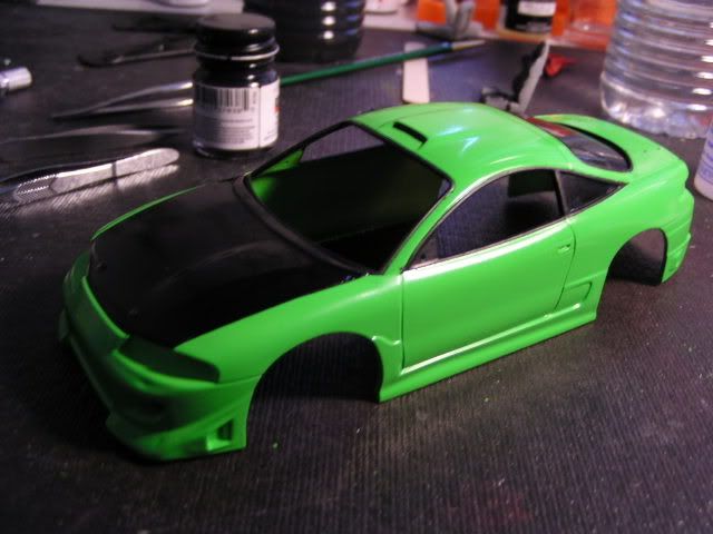 The body with the first color of green. I didn't like this paint. It was too dark, and too green. ![]() So I used a lighter, more lime/apple green. ![]() I also painted the seats to look the the Sparco Torino's that he had (minus the White Sparco stitching)
