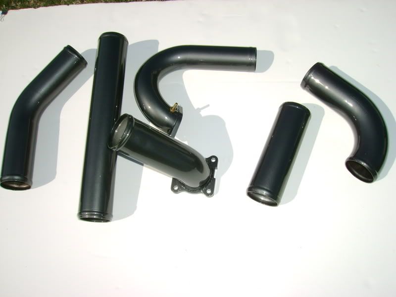 ![]() Ned, while I'll admit black looks dope, it's a bitch to maintain. Mine is factory paint and looks good from 15-20ft, but get up close and I personally will avoid black in the future, but this one was a smoking deal so......I did all 2.5" piping....short route. My IC is an old school Buschur street core with "back door" inlet/outlet so it was relatively easy to do. I need to get a current pic of the piping since it is now powdercoated in smoked chrome. Here's a pic right after powdercoat. ![]() ![]() Here's a few pics of how I routed the piping. ![]() ![]() ![]() ![]() ![]() ![]() Outside of having a turbo outlet that points down, I don't think it can get any shorter