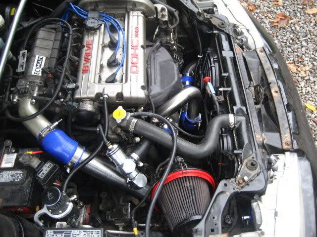 FP 18g turbo e3 o2 & mani, 3" exhaust, , 7 bolt, wiseco/eagle, walbro 255hp re-wired, Aeromotive FPR, FIC 1150cc, injen intake, greddy RS, aem wideband, turbo xs mbc, act 2600 clutch sprung 6 puck, BC 272's, dsmlink v2.5, ETS FMIC, Devils Own, JMF SMIM. 18 Inch chrome rims In closet AEM Fuel Rail, SS Lines, 1997 TSI AWD Diamonds Are 4Ever 12.7 @ 107 http://i83.photobucket.com/albums/j2...y/DSC00461.jpg |