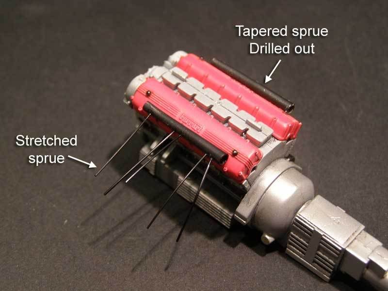 nice job so far. Seats look great with the white sprue, for engine-wiring I prefer wire