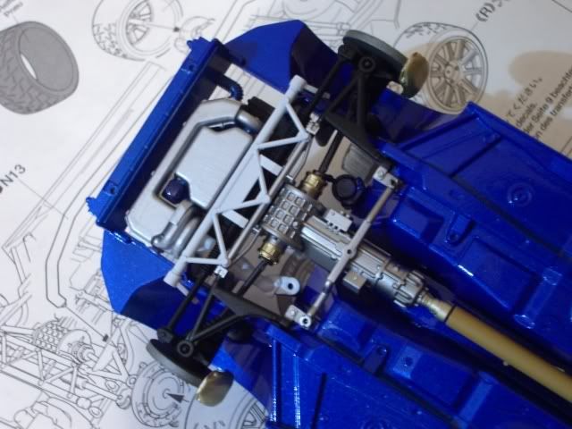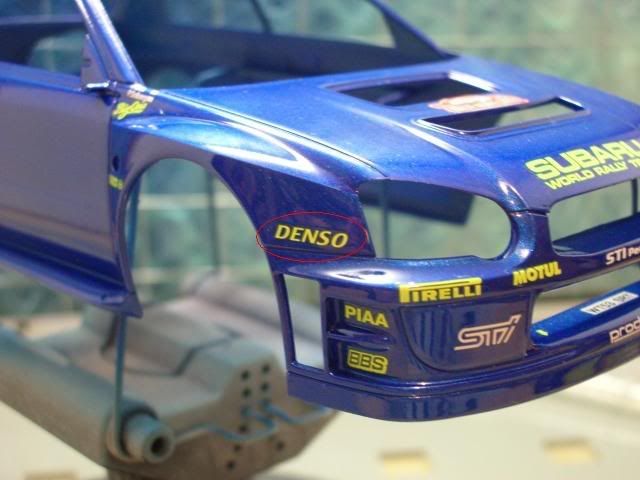 Well after I finished the McLaren MP4/7 I fancied doing a rally car as it seems ages since my last one.So far I got the body shell painted (Zero World Rally Blue) and started the decals.The decals seem a little brittle, so much so that one of the Denso logo's on the front wing curled up and destroyed itself.If anyone has a spare I would greatly appreciate it