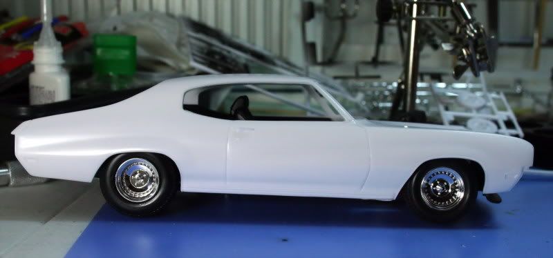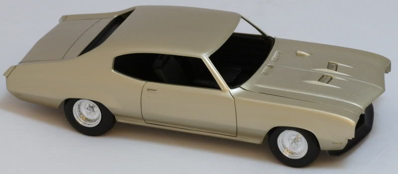 I had a friend in high school that had a lemon yellow GSX with a 455. It was the fastest car out of all my buddies' rides. His had natural aluminum Centerlines. These are chrome, but I'm thinking of stripping them and spraying with alclad. I'm also thinking of painting the car Tamiya acrylic gold (I have too many yellow cars already!). Any opinions?