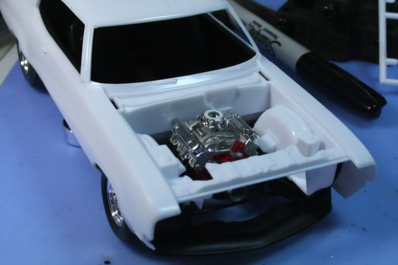 I still have a lot of work to do on the body and under the hood, but this is how she looks at this point. I think I'll leave the decals off. I like the clean look without them. ![]() Here's a shot with the hood open ![]()
