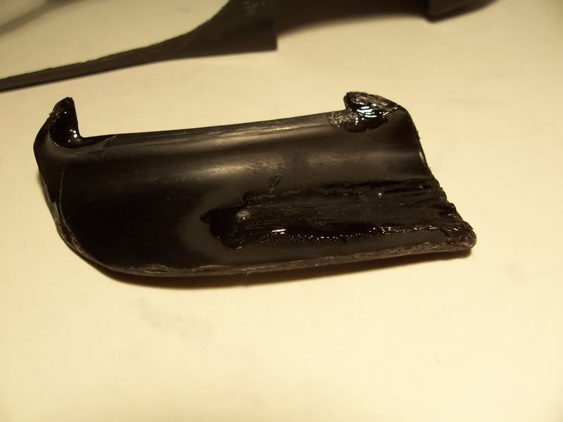 ouch, you should read the FAQ next time im surprised you didnt cut your hand. thats not bad its a clean but you're gonna work twice as hard to make it look good. its rubbery for now just let the glue completely dry.