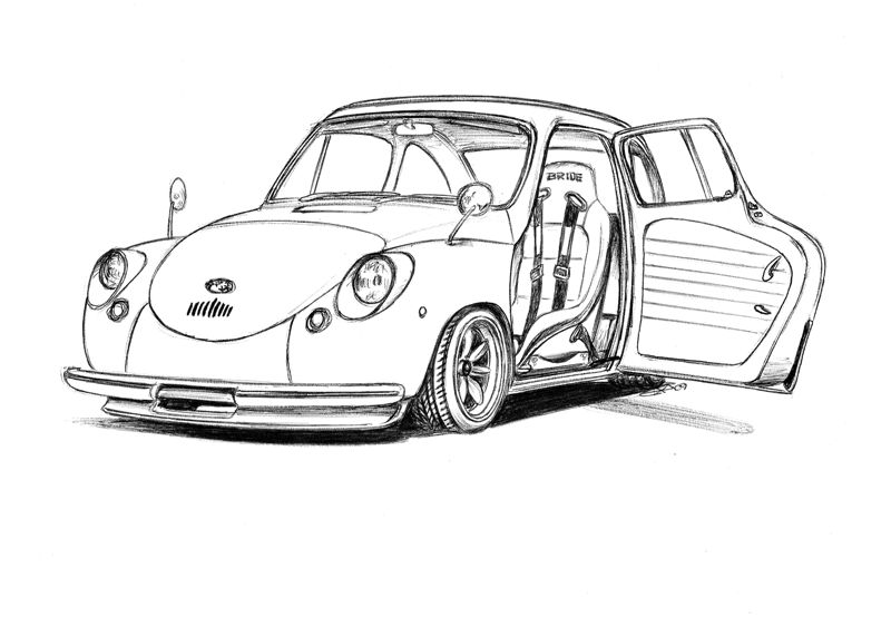 So I was tempted since "nicecar" teased me with his 360 [Ferrari] sketch. Only I couldn't resist a plain Subaru 360, I had to mod it just a little.