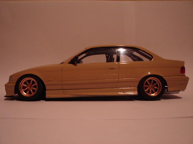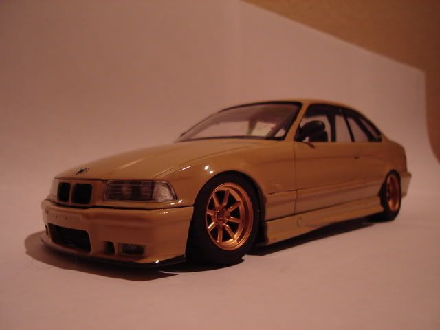 The E36 is a Dragon kit that i painted light tan, dropped on Watanabe wheels. Its like a japan track version BMW. The interior is gutted, one seat, touring car dashboard and rollcage. I'll take day shots tomorrow. ![]() ![]() ![]() ![]() ![]() ![]() ![]() ![]()