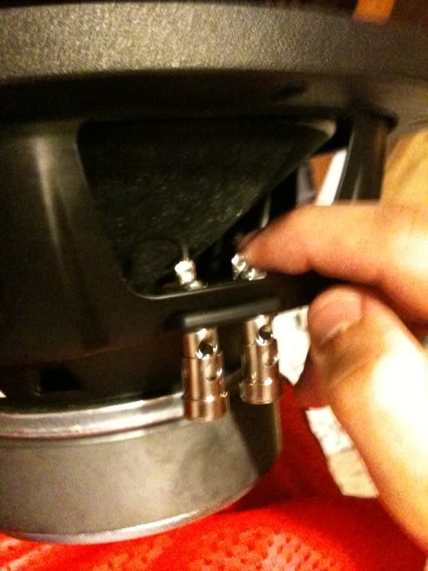 from the picture below the wire from the Sub itself to where i connect my speaker wires came off. I don't know if this means its "blown" i dont know all the terms when it comes to this stuff nor do I know what the part of the sub this is called. But as you can tell from pic the Negative to the right is still on the metal part but the positive is not. Any suggestions on how to fix? Thanks for replys ![]()