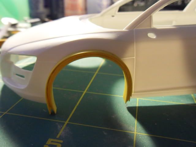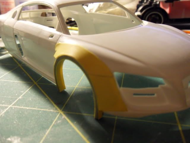 ![]() I started widening the wheel wells using styrene. ![]() ![]() ![]() ![]() I then filled the gap in between the strips with milliput and added the wide body. ![]() ![]() ![]() Sorry for the dark pictures. It was 4am. A little feedback please. Positive or negative, bring it.