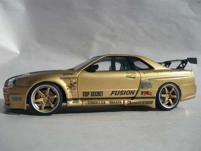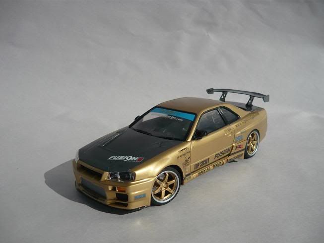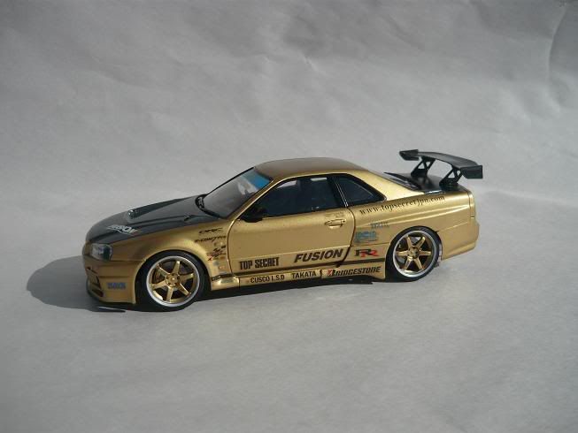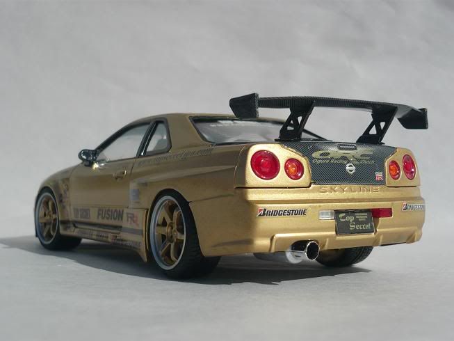 one quick tip for your next skyline build, behind the glass of the front lights is suppose to be a very dark metallic grey or semi gloss black looks accurate aswell. except for the chrome buckets & the silver curved "edge"