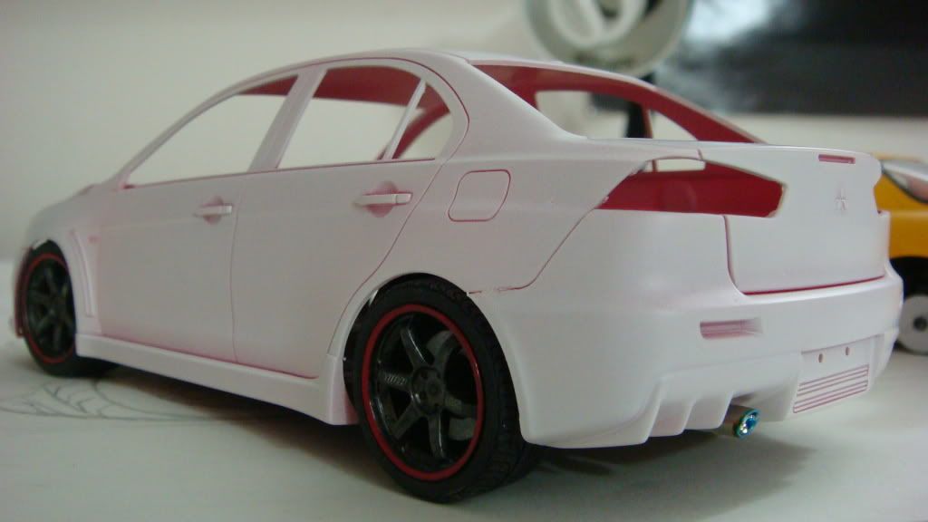 Congrats on being the first completed X on the forum! What clearcoat did you use? I think it would look better if you actually used a decal for the rear emblem, or perhaps just make one with BMF/tamiya mirror materials/or similar.