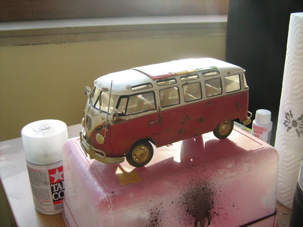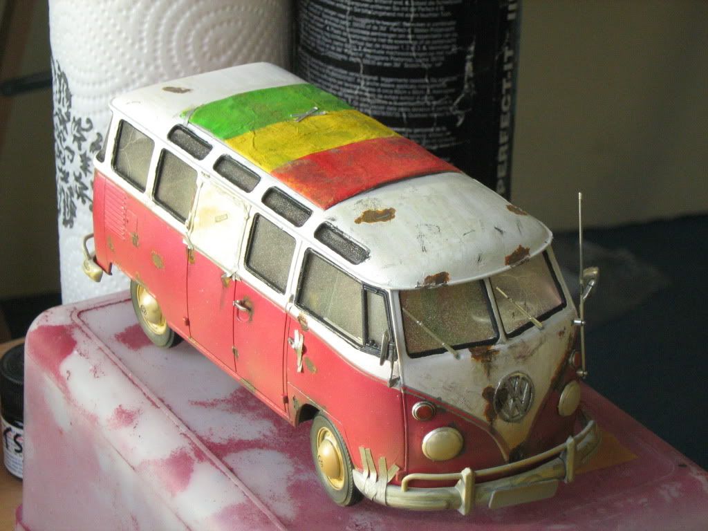 My recently finished VW bus. At first my goal was to make a clean bus, but the primer etched into the plastic (last time I'll use the motip primer) and body was ruined.. so i made it like a badly maintained one. Hope you like it!