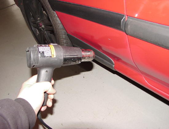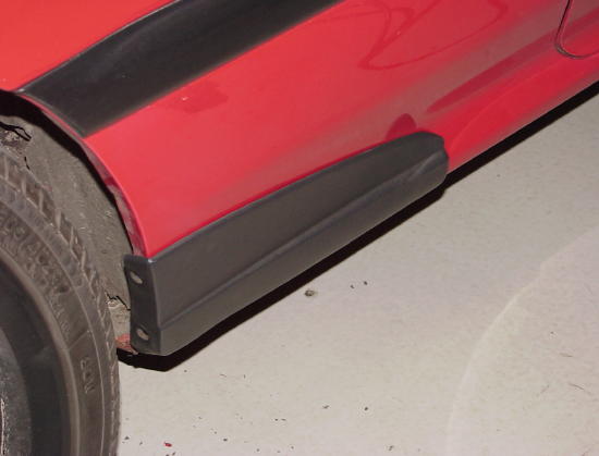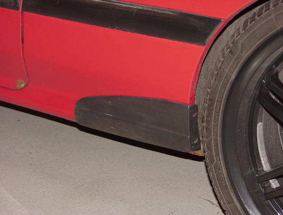 So here we go, I looked around for a doner car that had the parts I needed. I found the 89=90 mazda MX-6 was the most likely candidate. It has a rubber moulding just in front of the rear wheel, to protect it from stome chips an such. I went to the local junk yard and pulled them, from an 89. They pop off with a screw driver, ther is double stick tape, two clips in the wheel arch and three clips holding to the quater panel. I test fitted them, good enough! Sold! bought them for $10.00. cleaned them up with some all purpose claener, and took all the old tape off and cut the clips off the back. Once they were perferctly clean, i cleaned them again with denatured alcohol. also cleaned the area of on the car. I then used some 3M double stick tape, $5.00. lined the back of the panel. took all the backing off the tape and heated it with a heat gun to activate the glue. A hair dryer will work for this as well. Once nice and warm, i applied the panel to the car. once positioned correctly, i heated it again with the heat gun till it was nice and buttery. at this point you can mold it to the contour of the quater panel with no problem. do the same for the other side and your done. check out the pics, have fun, and fix that hole! |