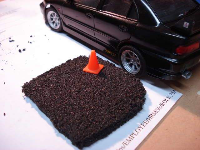 and for the rest of the guys wondering about the asphault, it is made from sand and black paint. The black paint didnt need to be anything fancy but would work better at holding the sand grains together if it's thick. There is a video on youtube which I followed the procedures on. |