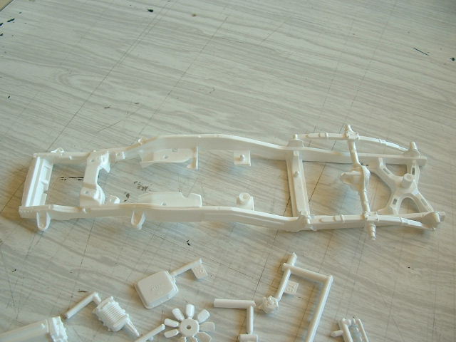Totally hear you on the excessive flashing... On an old corvette gasser I had sitting around, the stuff could be pulled off in 1-2" flakes. The excess was found on almost every single part on every tree, too! I didn't have enough patience for that--it would have probably taken weeks alone to get that crap off. Methinks it will become a donor kit for various other projects running around in my head :\