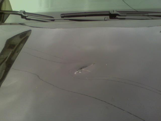 Cracked hood of the BMW...