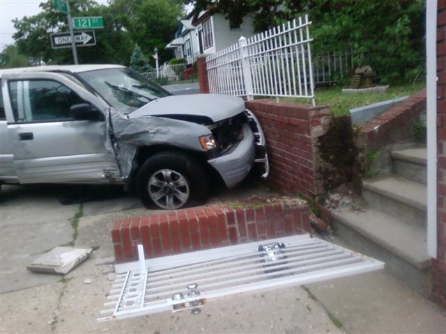 All I have to say is thank god for the brick work there. Saved the SUV from being a living room decoration.