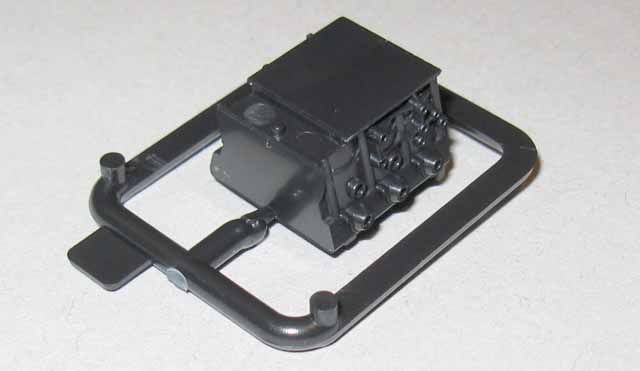 Tamiya's engine is no better than a diecast (sad...) There are a few more pieces that go with these large parts, but that doesn't improve much.