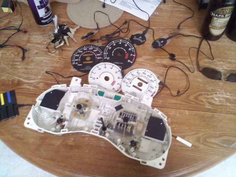 Installed the new gauages. Hated the way the white ones looked. And then they were blue at night :( Looked very Ricer, but at the time, that was all that was available. They also didnt work half the time, so was hard driving at night. So found these that look stock, but bright as hell with adjustable dimmer and on/off switch. Haven't seen them at night yet, but will be nice.
